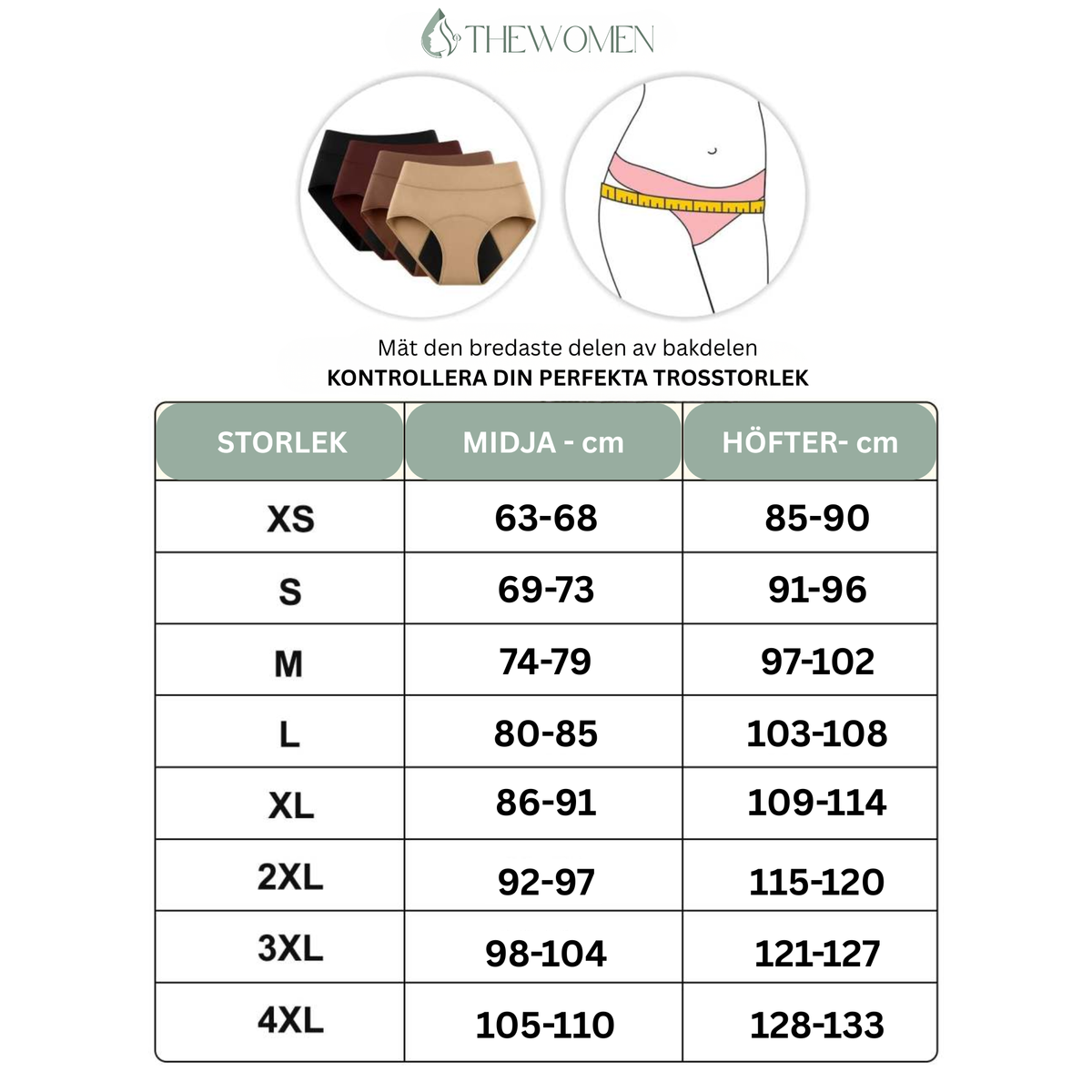 Våra läckagesäkra trosor har ett avancerat 4-lagers system som absorberar , förhindrar läckage och neutraliserar lukt, samtidigt som de håller dig torr och bekväm. Det inre lagret leder bort fukt, det absorberande lagret håller vätskan, det vattentäta lagret förhindrar läckage och det yttre lagret ger komfort.